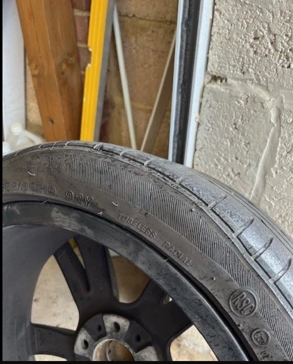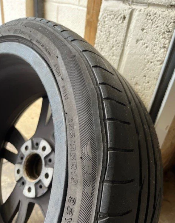 The most recent update is that I experienced vibration at higher speeds. As a result, I took the initiative to repair both the front track control arms and tie rod ends. Their affordability is satisfactory, and while there was a little degree of movement in one of the joints, it was not substantial. Nevertheless, my vibration persists and is gradually worse. After replacing the front end pieces, I have noticed that the vibration is originating from the back. Today, I have raised the vehicle and thoroughly inspected the rear linkage and stabiliser bars/suspension. I have not detected any looseness or movement in these components. The propeller shaft joints seem to be in good condition and there is no audible noise coming from the middle bearing. Nevertheless, I discovered that both rear tyres had incurred a substantial bulge on the inner wall (photographs included). Both sides of the wheel are in the same position, which might account for the vibration. The distortion of the tyre may be the cause. In addition to damage from potholes, there are many other factors that might lead to the simultaneous failure of both tyres.
