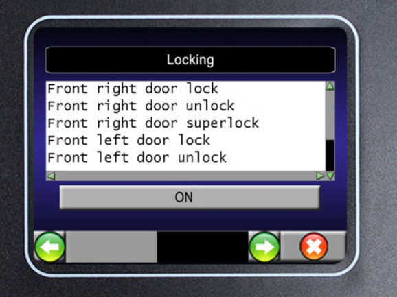 13. It would have been advisable to inspect and fix the driver's door before anything else. Furthermore, as I have said on several occasions, it is essential to consistently leave doors ajar and manually activate the latches prior to assessing the functionality of the locks. In the event of any complications, accessing the latch will be easy. If the latch motors are functioning properly, they should deactivate both the superlock and standard lock mechanisms with either a single turn of the key to the unlocked position or a single press of the fob. An option may be found in the Nanocom BECM Outputs menu. Choose the necessary "door unlock" option and activate the motor by pressing the ON button. The P38 lacks a mechanism to deactivate the superlock feature without first unlocking the vehicle.