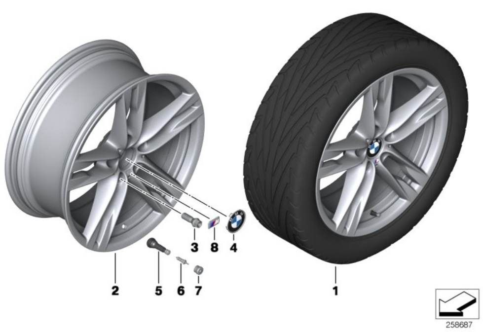 You may find the BMW component numbers and specifications on the backside of the wheel's spokes by dismounting the wheels. That is an alternative method to confirm the size you own. The component numbers and specifications for the wheels may be seen in the pictures shown above from the part database. An example of the rear wheel's component numbers and wheel specifications may be seen on the back side of the spokes in the pictures below. The final 7 digits of the BMW part number are being utilised instead of the whole 11-digit part numbers. This is typical.Sometimes the whole 11 digits are provided, while other times just the last 7 digits are offered.